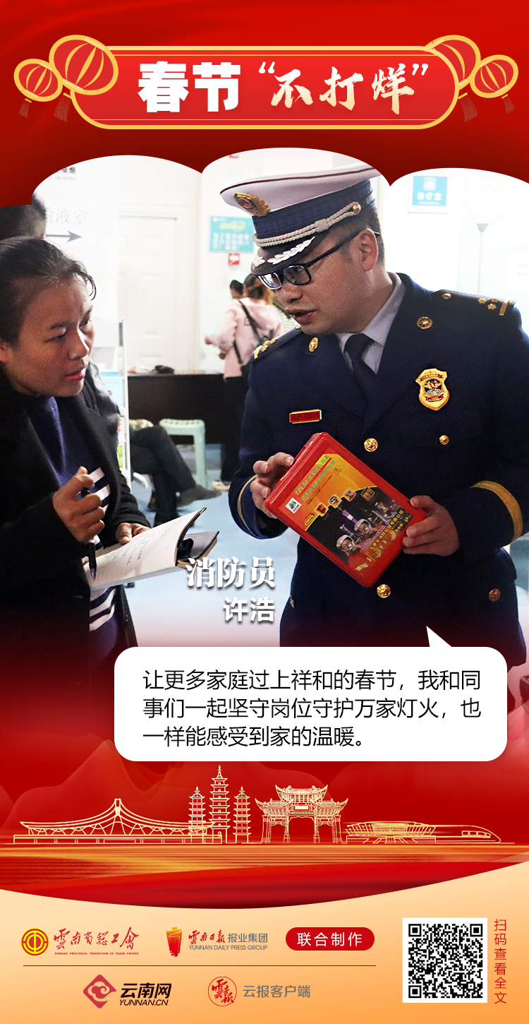 對于普洱市寧洱哈尼族彝族自治縣的消防官兵許浩來說,只要和同事一起守護住萬家燈火,就是春節(jié)最有儀式感的幸福。