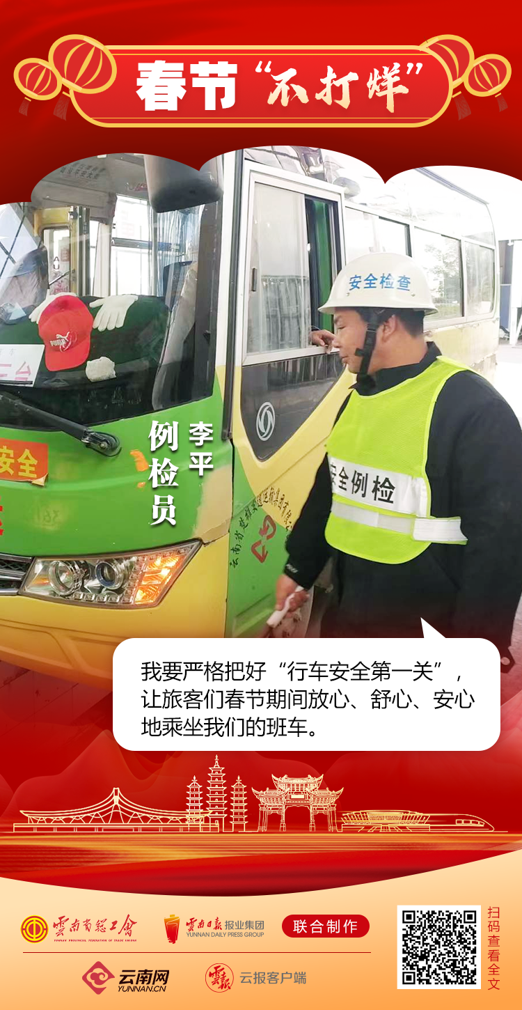 春節(jié)中的堅守,是崗位的擔當。在楚雄彝族自治州大姚縣,身為公共交通運輸一線例檢員的李平深以為然,春節(jié)期間,他堅定地選擇了堅守崗位,認真履行崗位職責。