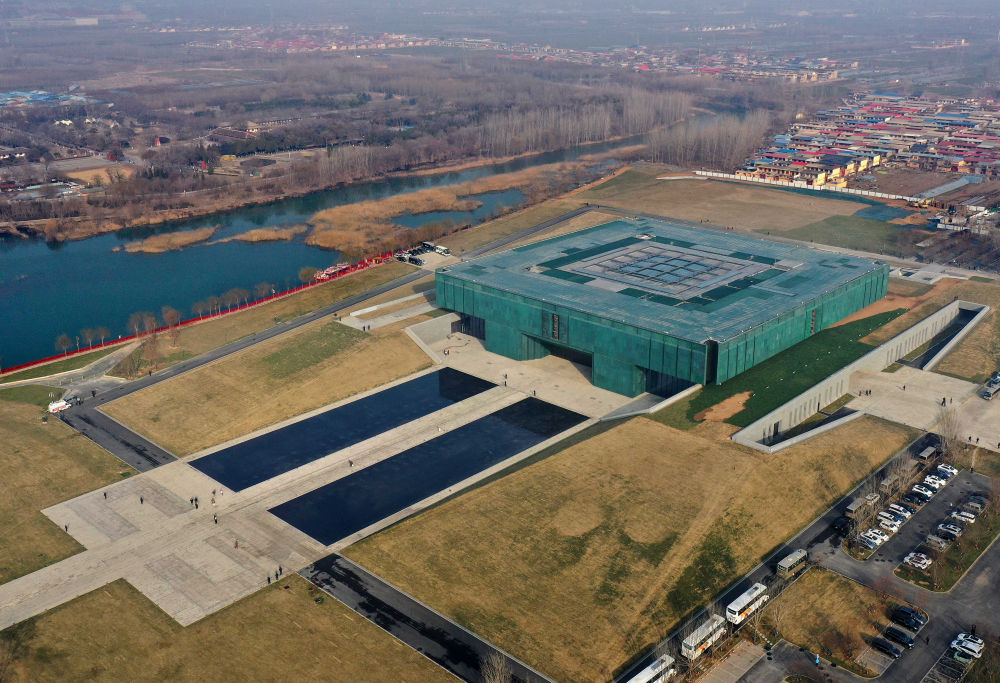 ??這是2024年2月26日拍攝的位于河南省安陽市的殷墟博物館新館(無人機照片)。新華社記者 李安 攝