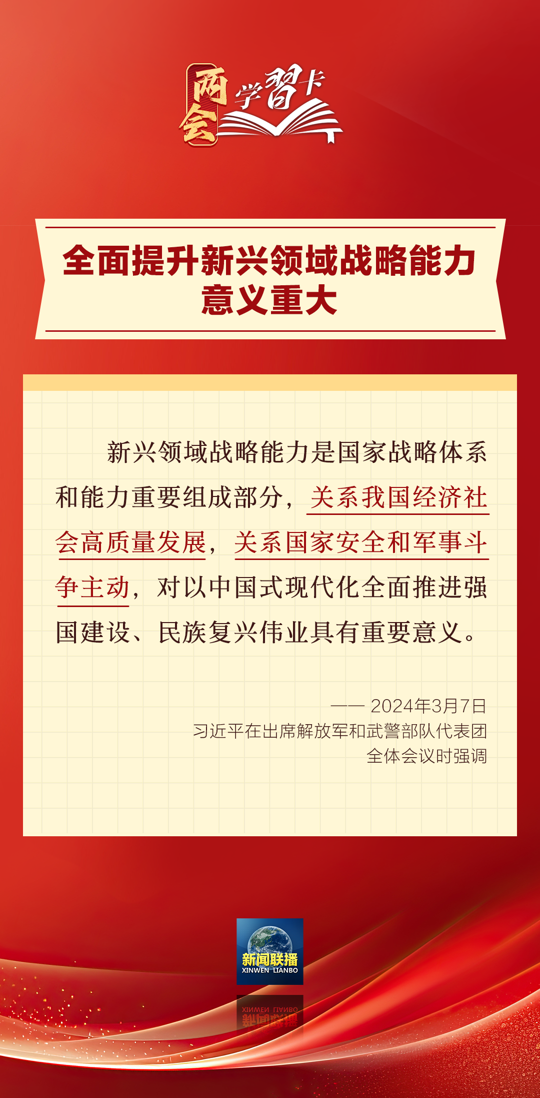 3月7日,習近平在出席解放軍和武警部隊代表團全體會議時強調,強化使命擔當,深化改革創(chuàng)新,全面提升新興領域戰(zhàn)略能力。如何提升新興領域戰(zhàn)略能力?一起學習↓↓↓