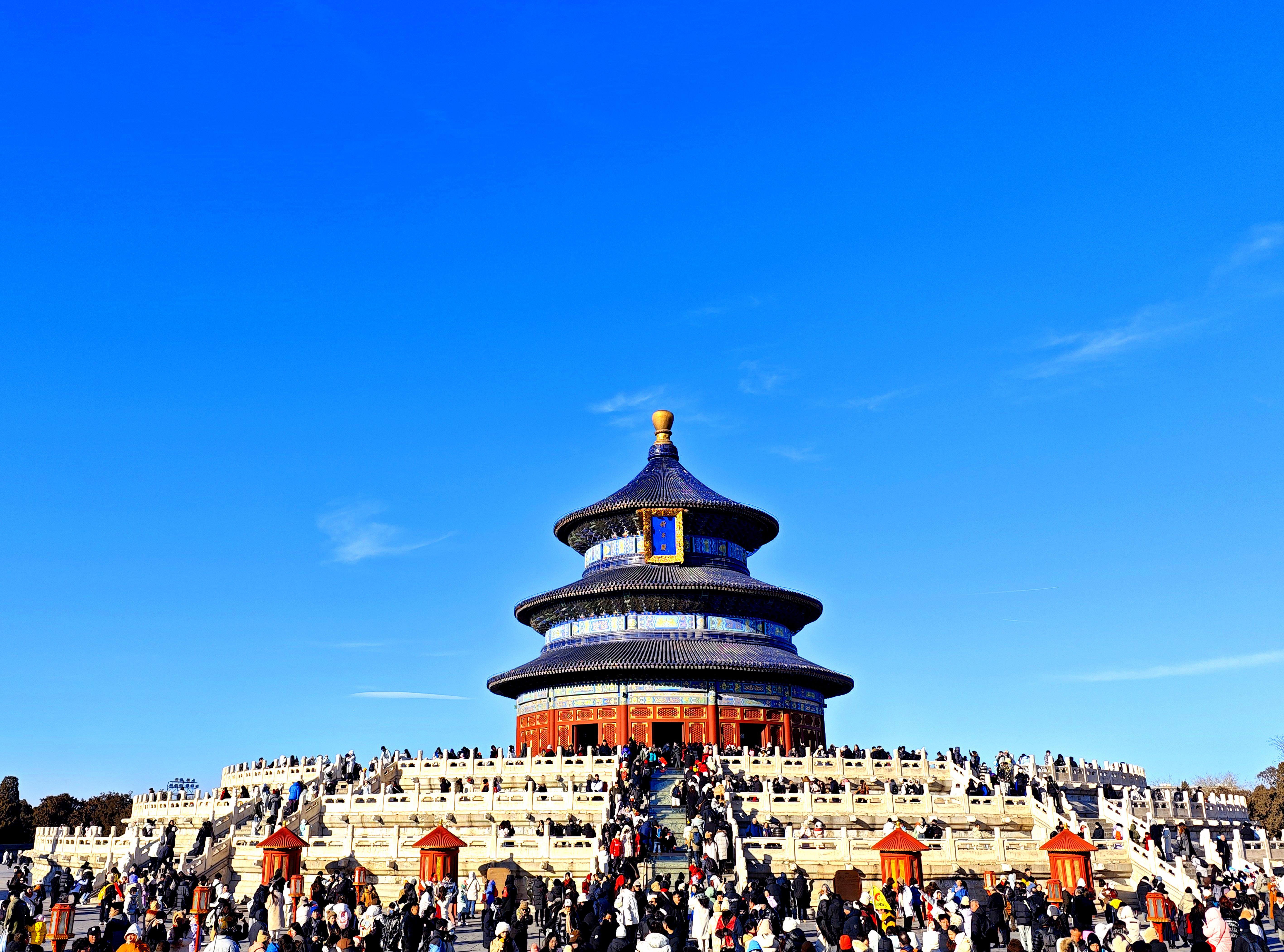 △2024年1月23日,北京持續(xù)晴好天氣,天壇公園藍(lán)天白云。最新數(shù)據(jù)顯示,北京PM2.5年均濃度連續(xù)三年穩(wěn)定達(dá)標(biāo),“北京藍(lán)”已成為常態(tài)。