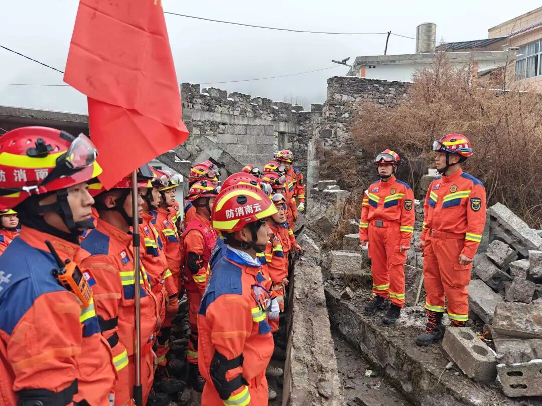 陳蓉(右二)帶隊支援云南鎮(zhèn)雄“1·22”山體滑坡救援。玉溪市消防救援支隊供圖