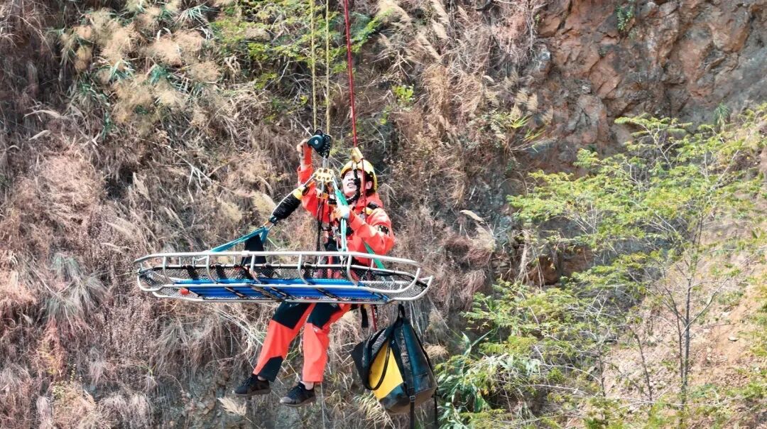 陳蓉進行山岳救援訓練。玉溪市消防救援支隊供圖