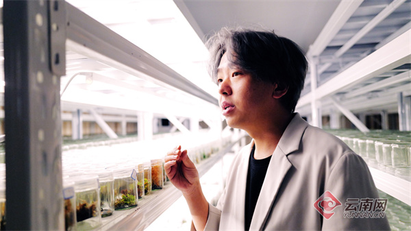 “你看,瓶子里幼苗葉片健壯、有光澤,而且呈十倍數(shù)地繁殖?!表樦鯐詣偸种傅姆较?,記者看到組培實(shí)驗(yàn)室里四五列緊匝密實(shí)的立柜上,陳列著成百上千個(gè)透明玻璃瓶,里邊長(zhǎng)滿(mǎn)了綠意盎然的小苗,頗為壯觀。