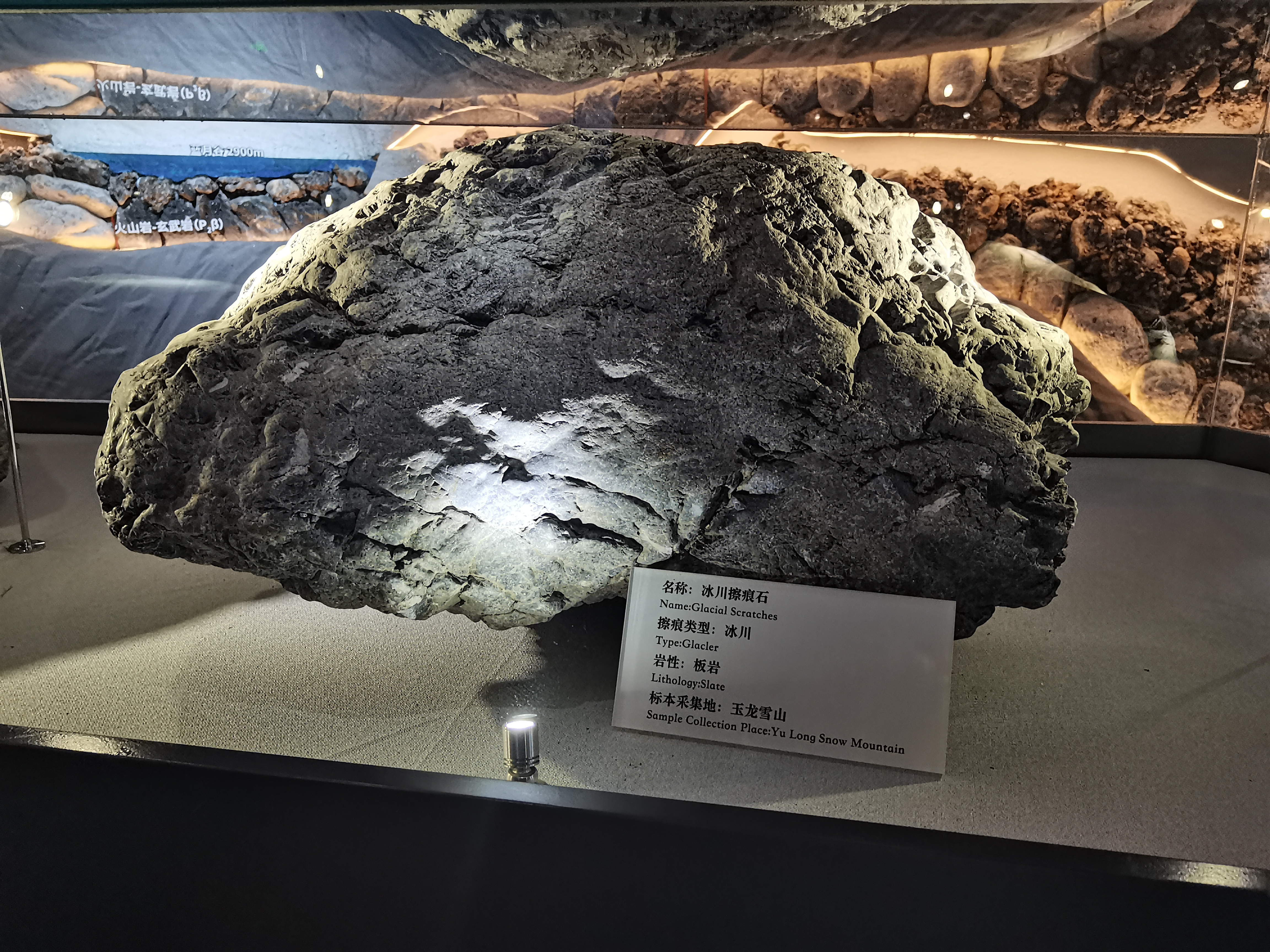 博物館內(nèi)還收藏了豐富的科普展品,包括玉龍之最、玉龍雪山更新世冰期、金色地表等多媒體展示,以及冰川擦痕石、金礦石、火山巖等實(shí)物標(biāo)本。其中,特別值得一提的是擦痕石。這些由冰川夾帶的塊石在運(yùn)動(dòng)時(shí)相互摩擦或與冰川槽谷基巖摩擦形成的痕跡,不僅見(jiàn)證了地質(zhì)的變遷,更成為了地質(zhì)學(xué)家們尋找地質(zhì)證據(jù)的重要線索。