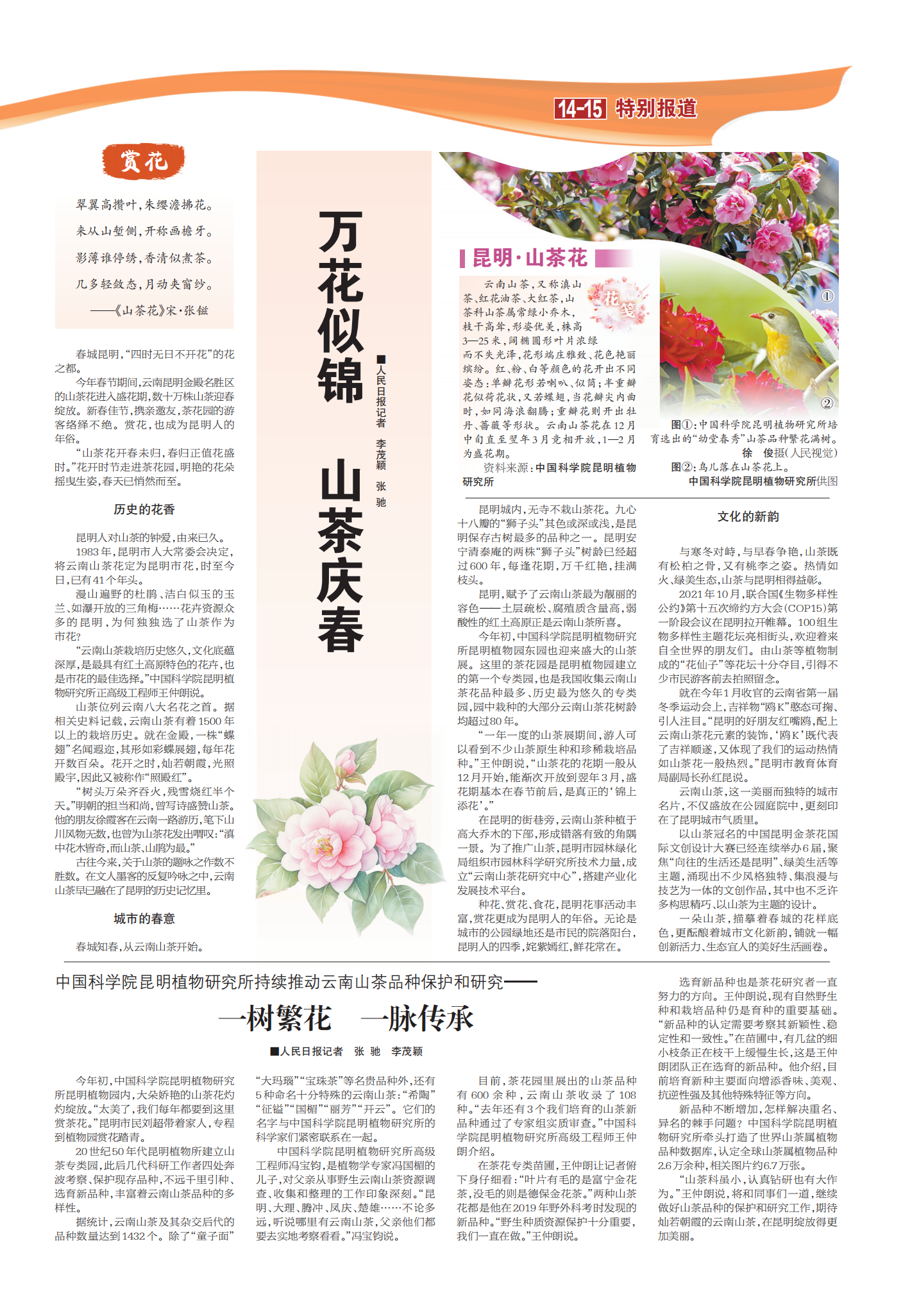 今年初,中國(guó)科學(xué)院昆明植物研究所昆明植物園內(nèi),大朵嬌艷的山茶花灼灼綻放?!疤懒?,我們每年都要到這里賞茶花。”昆明市民劉超帶著家人,專程到植物園賞花踏青。