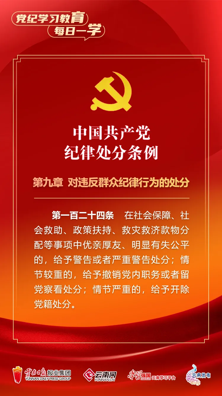 為深入學(xué)習(xí)貫徹落實(shí)習(xí)近平總書記關(guān)于黨紀(jì)學(xué)習(xí)教育的重要講話和重要指示精神,便于全省各級(jí)黨組織和廣大黨員、干部深入學(xué)習(xí)貫徹修訂后的《中國共產(chǎn)黨紀(jì)律處分條例》,云南網(wǎng)聯(lián)合“學(xué)習(xí)強(qiáng)國”云南學(xué)習(xí)平臺(tái)、云南發(fā)布共同策劃推出“黨紀(jì)學(xué)習(xí)教育?每日一學(xué)”專欄,營造全員參與、人人學(xué)紀(jì)的濃厚氛圍。今天,我們推出第59期,一起來學(xué)習(xí)。