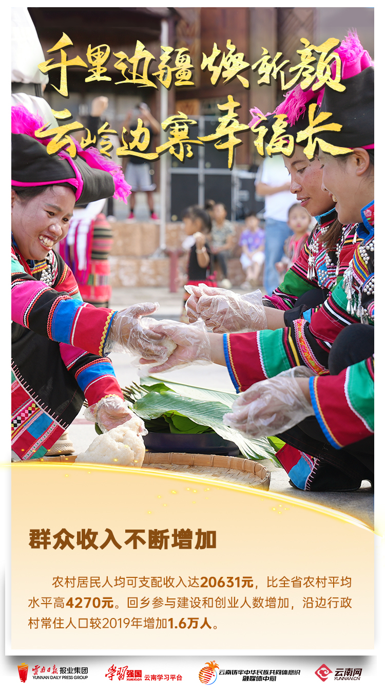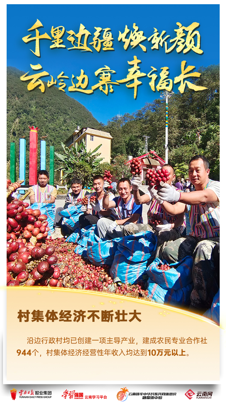 村寨美如畫(huà)、產(chǎn)業(yè)促增收、幸福笑開(kāi)顏……在云南4060公里邊境線上,各族群眾用勤勞的雙手繪就出一幅“邊民富、邊關(guān)美、邊疆穩(wěn)、邊防固”的美好畫(huà)卷。