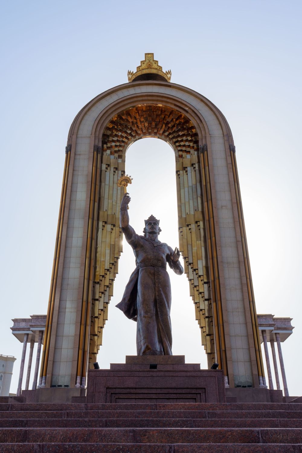 ↑位于杜尚別的索莫尼紀(jì)念碑。 新華社記者 周荻瀟 攝
