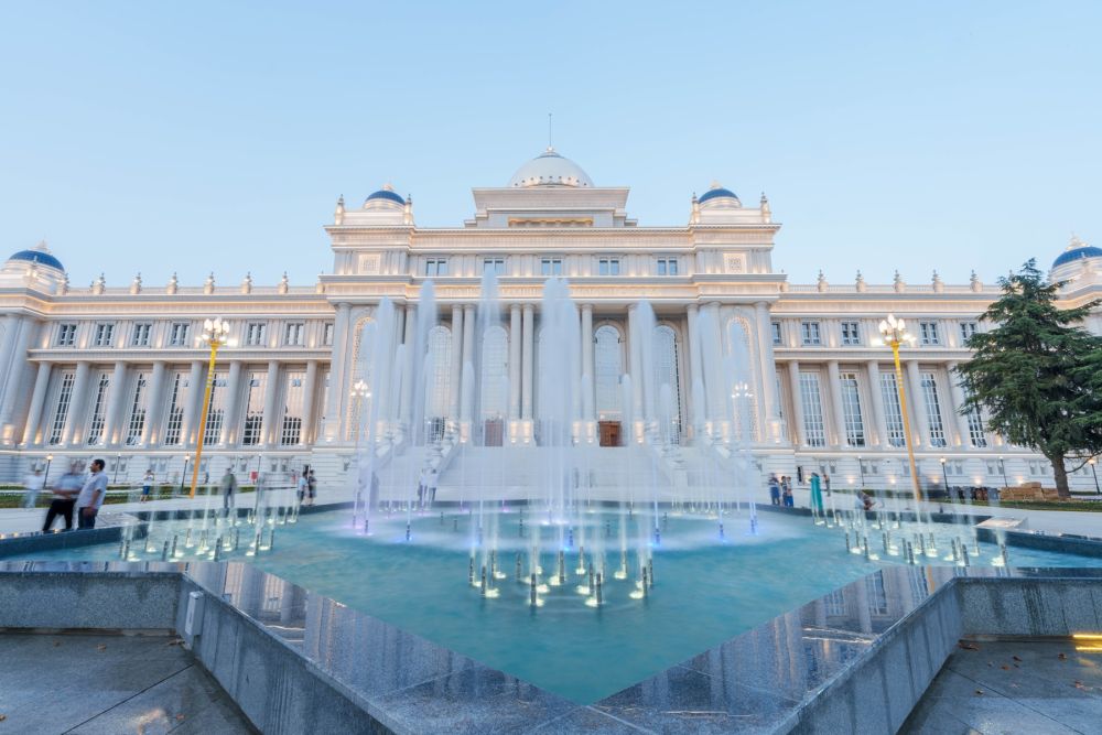 ↑位于杜尚別的塔吉克斯坦議會(huì)大樓。 新華社記者 周荻瀟 攝