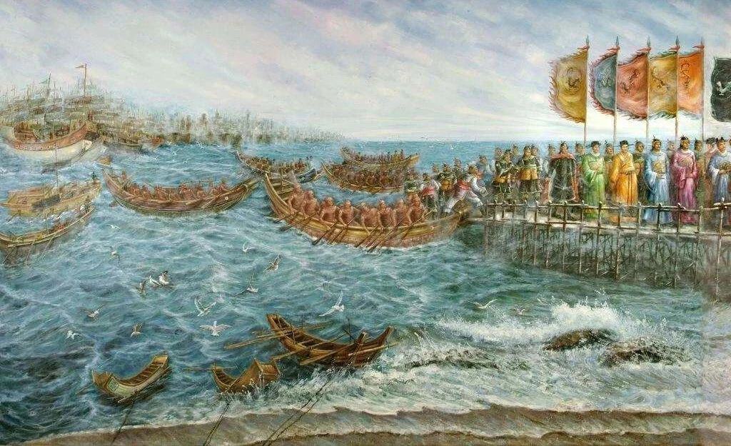 樓船:中國古代戰(zhàn)船,因外觀似樓而得名。因其船大樓高,遠攻近戰(zhàn)皆合宜,故為古代水戰(zhàn)之主力。