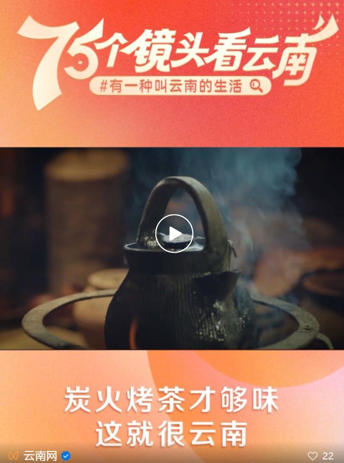 為獻禮中華人民共和國成立75周年,云南網(wǎng)聯(lián)合云南發(fā)布、“學習強國”云南學習平臺共同策劃推出“喜迎新中國成立75周年 75個鏡頭帶你看云南”融媒專欄,在7月18日至9月30日期間,一天一推,連續(xù)推出75條短視頻,聚焦最具云南味兒的山、水、風、物、人,用細膩鏡頭、新穎表達、明快節(jié)奏、酷炫畫面,再現(xiàn)最奇特的山水風光、最地道的民族風情、最深厚的文化底蘊、最絢麗的民間藝術(shù)、最原汁原味的美食,全方位展現(xiàn)“有一種叫云南的生活”。今天,請看第二期——《炭火烤茶才夠味》。