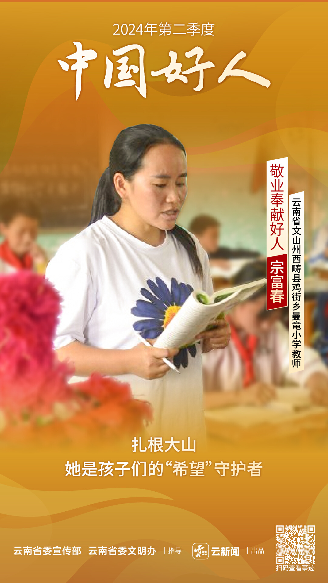 宗富春,女,1989年2月生,中共黨員,云南省文山州西疇縣雞街鄉(xiāng)曼竜小學(xué)教師。作為曼竜村走出大山的第一個(gè)大學(xué)生,她懷著改變家鄉(xiāng)、服務(wù)家鄉(xiāng)的初心,再次回到曼竜民族小學(xué)做了一名雙語教師。她先后榮獲云南省最美鄉(xiāng)村教師、云南省“三八紅旗手”,全國“三八紅旗手”等榮譽(yù)。
