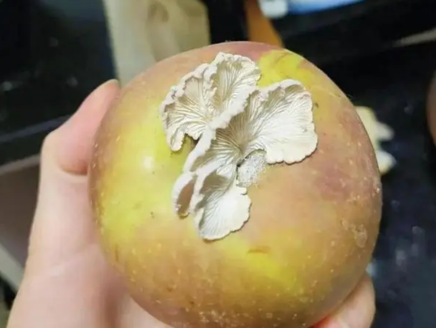 長有蘑菇的蘋果。圖源:當事人社交賬號
