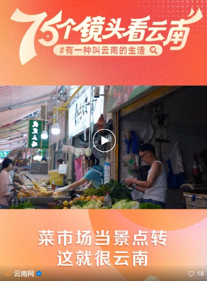 為獻禮中華人民共和國成立75周年,云南網(wǎng)聯(lián)合云南發(fā)布、“學習強國”云南學習平臺共同策劃推出“喜迎新中國成立75周年 75個鏡頭帶你看云南”融媒專欄,在7月18日至9月30日期間,一天一推,連續(xù)推出75條短視頻,聚焦最具云南味兒的山、水、風、物、人,用細膩鏡頭、新穎表達、明快節(jié)奏、酷炫畫面,再現(xiàn)最奇特的山水風光、最地道的民族風情、最深厚的文化底蘊、最絢麗的民間藝術(shù)、最原汁原味的美食,全方位展現(xiàn)“有一種叫云南的生活”。今天,請看第三十四期——《菜市場當景點轉(zhuǎn),這就很云南》。