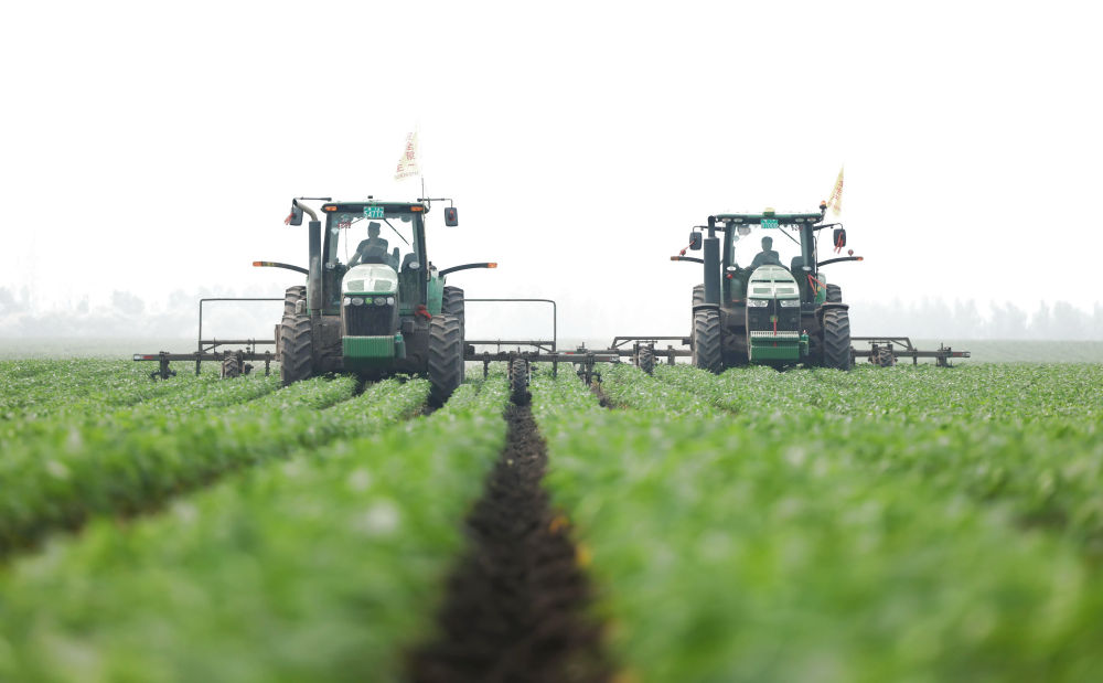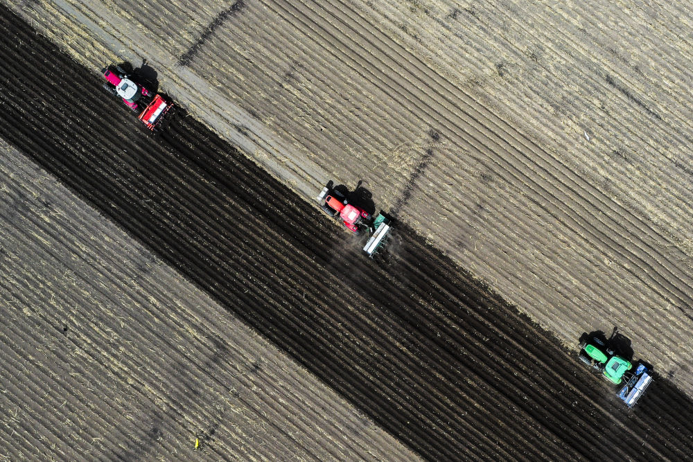 2024年6月25日,大型農(nóng)機在黑龍江北大荒集團鶴山農(nóng)場作業(yè),為土壤增溫放寒(無人機照片)。今年,黑龍江推進高標準農(nóng)田建設(shè)、侵蝕溝治理和農(nóng)田防護林更新修復(fù)一體化實施,建設(shè)高標準農(nóng)田1400萬畝、治理侵蝕溝1.2萬條,全面加強黑土地保護利用?!?/span>