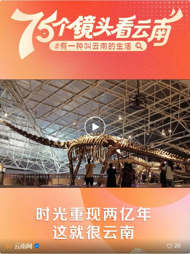 為獻(xiàn)禮中華人民共和國(guó)成立75周年,云南網(wǎng)聯(lián)合云南發(fā)布、“學(xué)習(xí)強(qiáng)國(guó)”云南學(xué)習(xí)平臺(tái)共同策劃推出“喜迎新中國(guó)成立75周年 75個(gè)鏡頭帶你看云南”融媒專欄,在7月18日至9月30日期間,一天一推,連續(xù)推出75條短視頻,聚焦最具云南味兒的山、水、風(fēng)、物、人,用細(xì)膩鏡頭、新穎表達(dá)、明快節(jié)奏、酷炫畫面,再現(xiàn)最奇特的山水風(fēng)光、最地道的民族風(fēng)情、最深厚的文化底蘊(yùn)、最絢麗的民間藝術(shù)、最原汁原味的美食,全方位展現(xiàn)“有一種叫云南的生活”。今天,請(qǐng)看第四十二期——《時(shí)光重現(xiàn)兩億年,這就很云南!》。