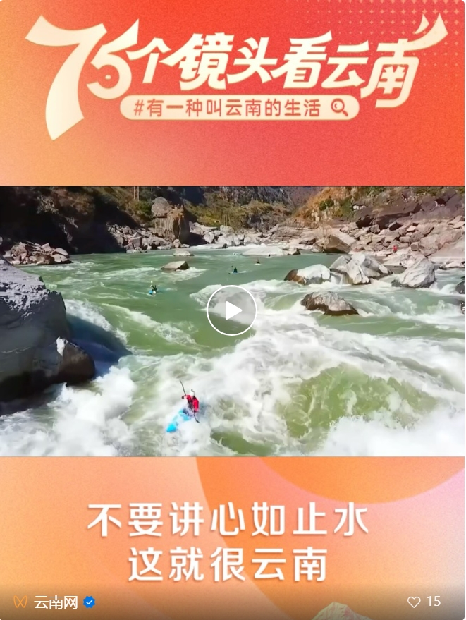 為獻(xiàn)禮中華人民共和國(guó)成立75周年,云南網(wǎng)聯(lián)合云南發(fā)布、“學(xué)習(xí)強(qiáng)國(guó)”云南學(xué)習(xí)平臺(tái)共同策劃推出“喜迎新中國(guó)成立75周年 75個(gè)鏡頭帶你看云南”融媒專欄,在7月18日至9月30日期間,一天一推,連續(xù)推出75條短視頻,聚焦最具云南味兒的山、水、風(fēng)、物、人,用細(xì)膩鏡頭、新穎表達(dá)、明快節(jié)奏、酷炫畫面,再現(xiàn)最奇特的山水風(fēng)光、最地道的民族風(fēng)情、最深厚的文化底蘊(yùn)、最絢麗的民間藝術(shù)、最原汁原味的美食,全方位展現(xiàn)“有一種叫云南的生活”。今天,請(qǐng)看第四十三期——《不要講心如止水,這就很云南》。