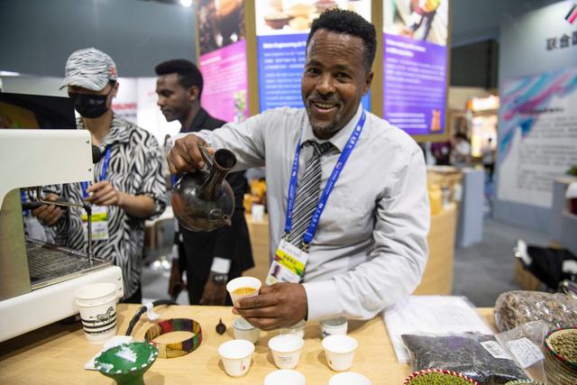 2023年6月29日,展商在長沙舉行的第三屆中國-非洲經(jīng)貿(mào)博覽會(huì)上介紹埃塞俄比亞咖啡。隨著中國開放的大門越開越大、中國咖啡消費(fèi)的快速增長,埃塞俄比亞咖啡在中國越來越受歡迎。