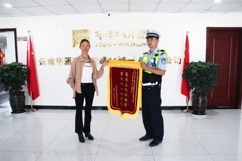 麗江市公安局交通警察支隊高速公路交巡警管理大隊六德中隊收到的錦旗。(供圖)
