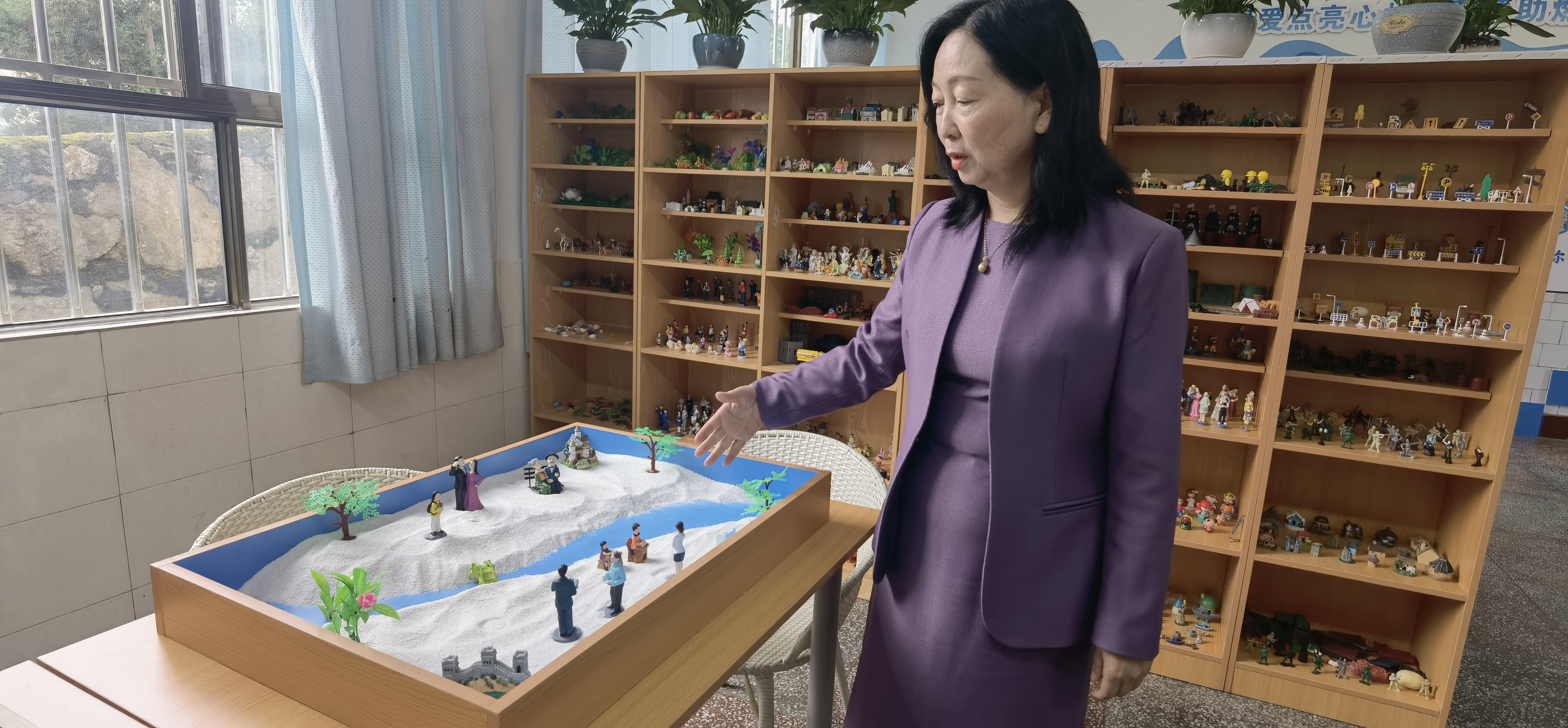 此外,學校注重將心理健康課程融入日常教學。在“心靈驛站”,心理輔導員王蕊以一個小小的沙盤游戲舉例說,這可以引導孩子們發(fā)展想象力和創(chuàng)造力,對于一些存在焦慮情緒、注意力分散、語言溝通困難等問題的兒童也能起到良好效果。