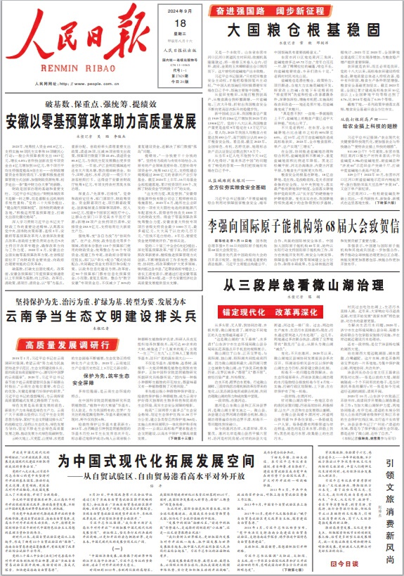 9月18日《人民日?qǐng)?bào)》01版截圖