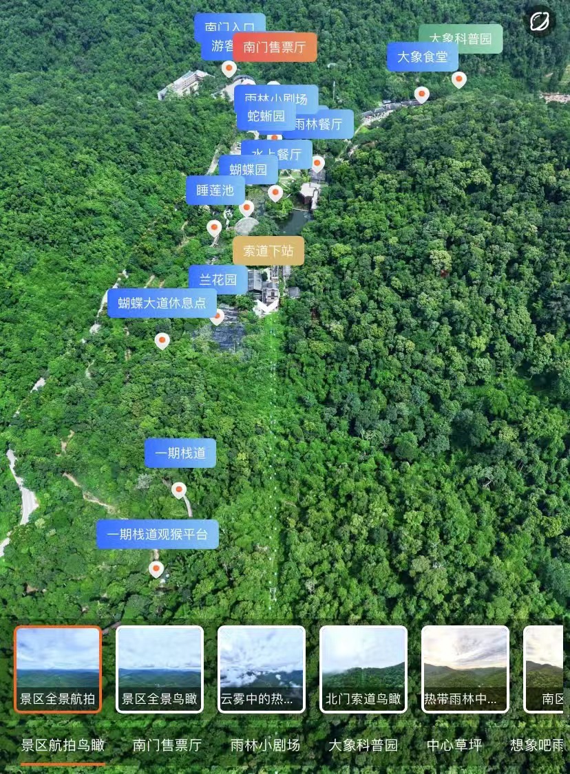 亞洲象數(shù)字博物館——不受地理位置和開放時間的限制,多維度、多形態(tài)展示亞洲象相關(guān)信息。公眾可以通過“七彩云端”APP,點擊720云VR看野象谷景區(qū)全景圖,內(nèi)容包含:野象谷景區(qū)航拍鳥瞰圖、售票廳、雨林小劇場、大象科普園、中心草坪、想象吧雨林餐廳、大象下午茶、蛇蜥園、蝴蝶園、蘭花園、索道、自然教育基地、亞洲象博物館、棧道、觀象臺、帳篷營地等等,涵蓋了全景區(qū)實景,公眾可以在線感受熱帶雨林風光全景,遠眺層次分明的生態(tài)群落,俯瞰藤蔓交織的熱帶雨林。