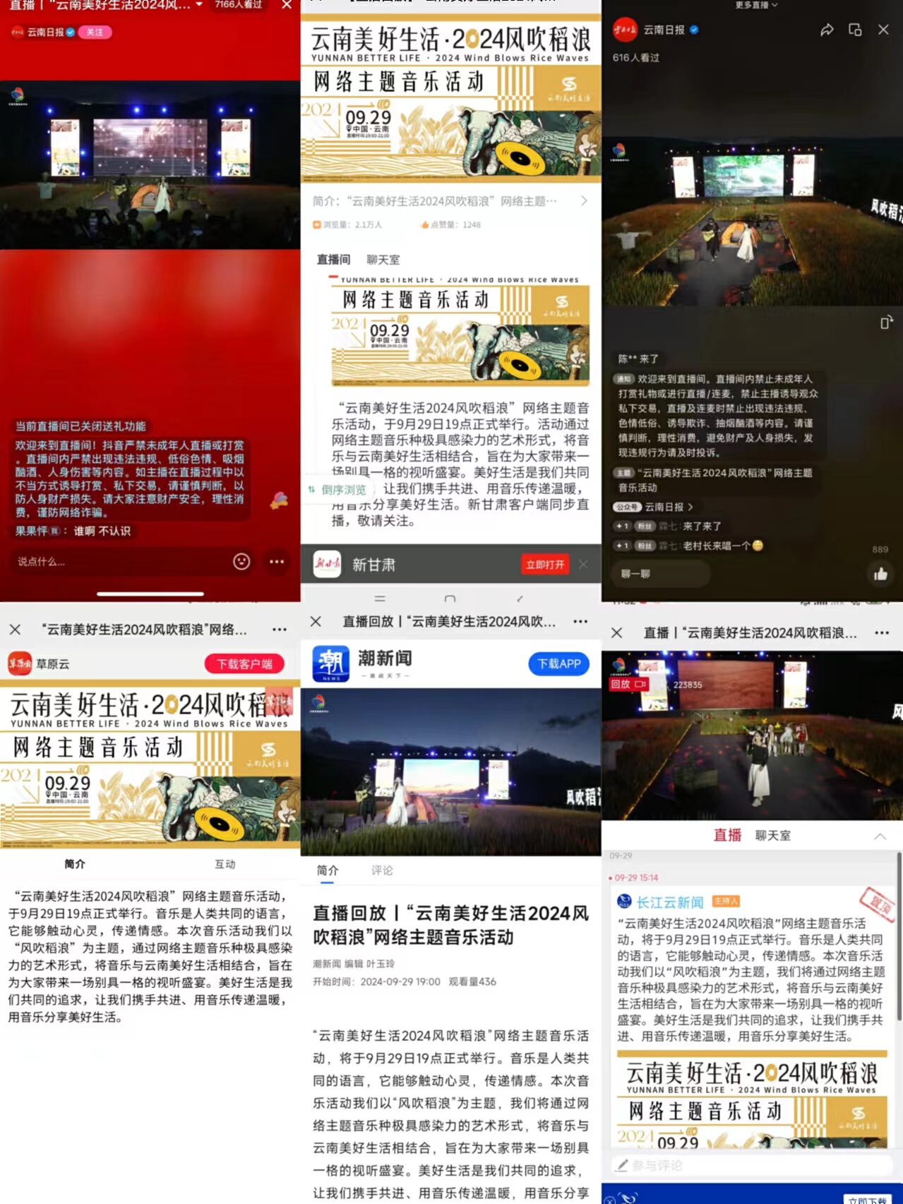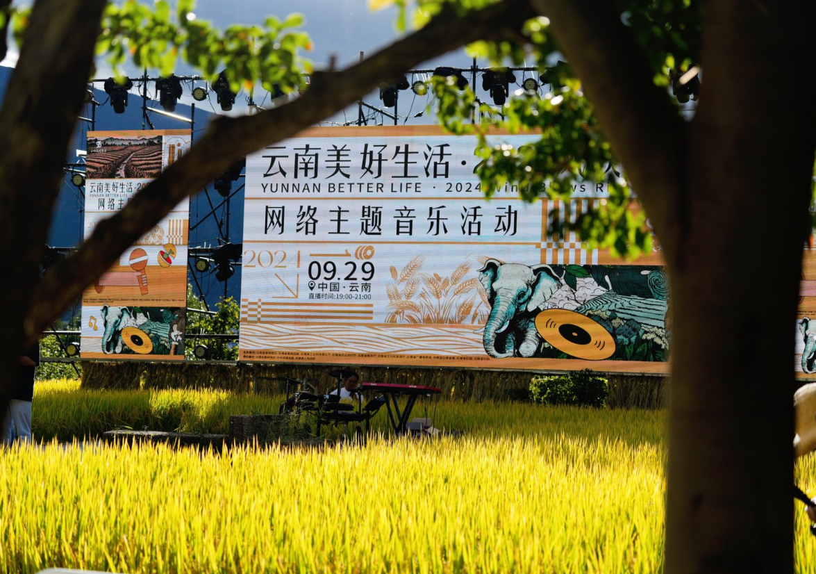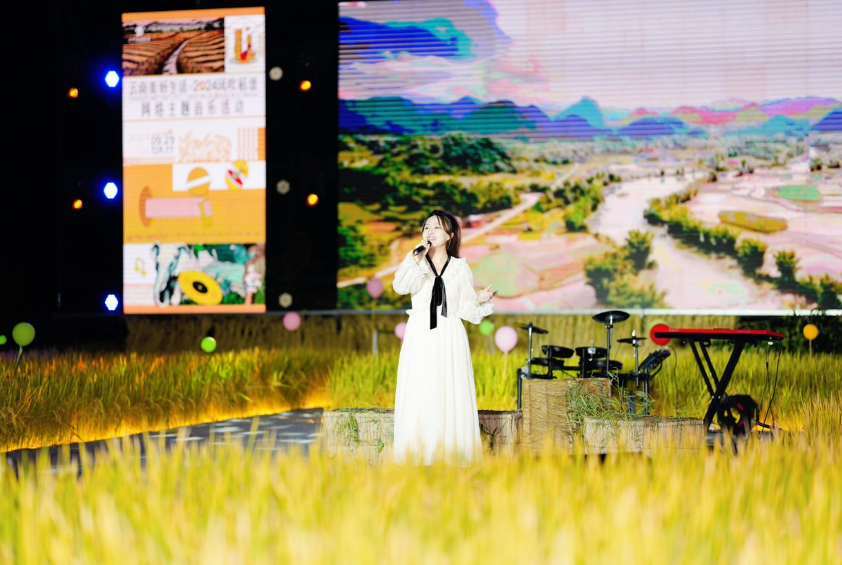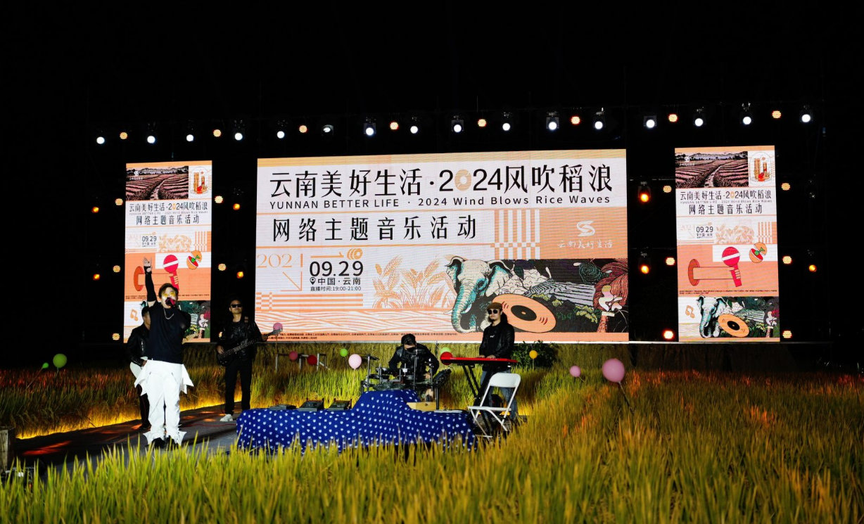29日晚上的大理州洱源縣鳳羽鎮(zhèn),一場名為“云南美好生活·2024風(fēng)吹稻浪”的網(wǎng)絡(luò)主題音樂活動把秋天的氛圍感拉滿。全國各地的知名音樂人與歌手在獨(dú)特的“稻田劇場”中獻(xiàn)唱,以秋風(fēng)拂過稻田的自然之聲為伴奏,為觀眾帶來一場別開生面的視聽盛宴。