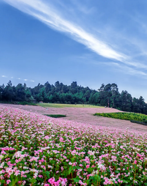 迪慶藏族自治州的維西縣也迎來了蕎花盛開季,成塊成片的蕎花迎風綻放,霧靄茫茫,高山人家,搖曳著一片粉色。乖巧纖細的蕎花,火紅的花桿,淺粉色的朵,淡黃色的蕊,粉色的花柱,玲瓏而娟秀,有著少女般的靈動和天真,為金秋收獲季節(jié)增添一抹色彩。