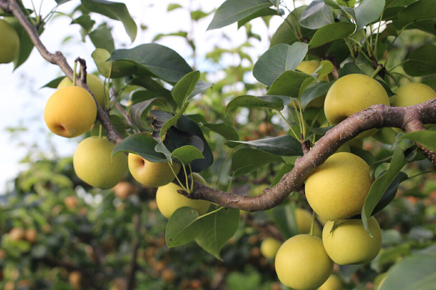 各類瓜果也到了成熟的季節(jié)。在昭通市魯?shù)榭h文屏、小寨等地成片的梨園里,雪花梨、小黃梨、香梨等不同類別的果實掛滿枝頭,果香四溢。
