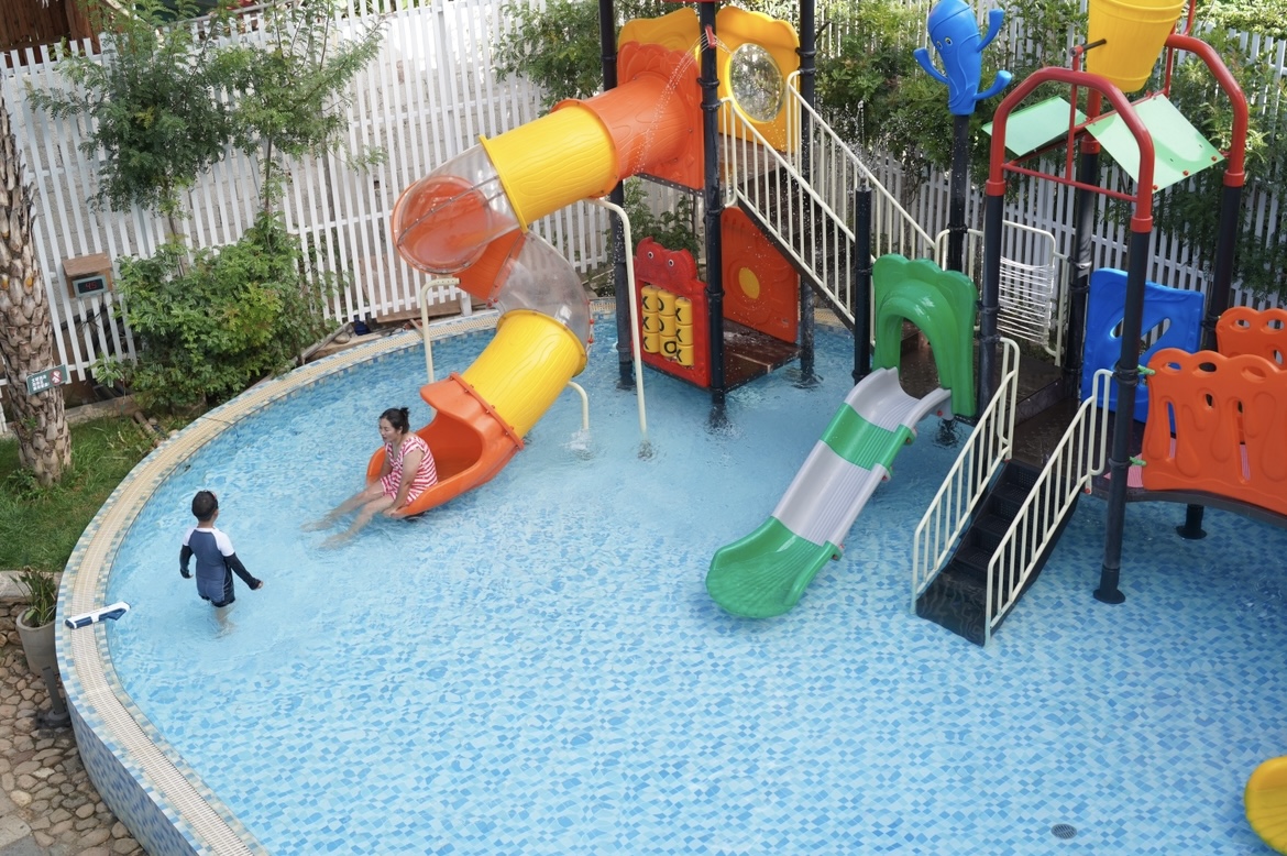 旅客在隱嵐溪溫泉酒店露天泳池玩耍
