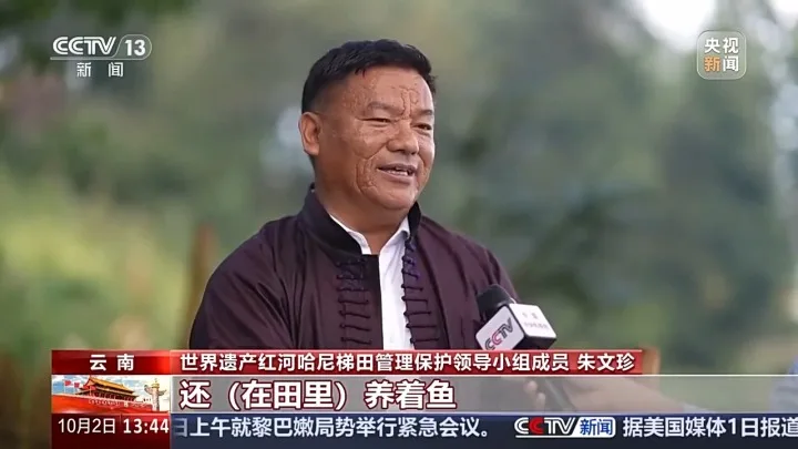 世界遺產(chǎn)紅河哈尼梯田管理保護領(lǐng)導小組成員 朱文珍:我們還在田里養(yǎng)著魚,還養(yǎng)著鴨子,“稻魚鴨”成了我們哈尼梯田遺產(chǎn)區(qū)老百姓增收致富的產(chǎn)業(yè)。我們的老祖宗留給我們的這片寶貴的遺產(chǎn)我們要代代相傳,這是我們邊疆各民族守護好自己的精神家園的一個重要體現(xiàn)。