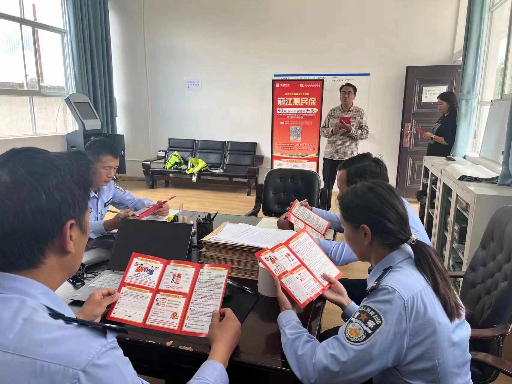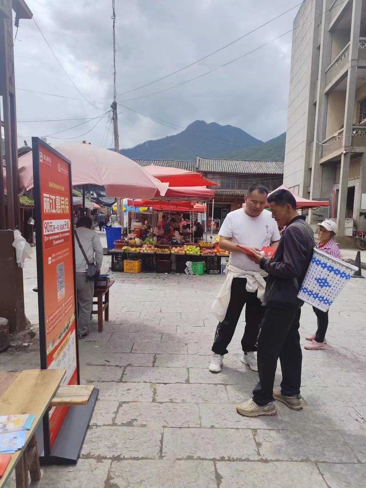 工作人員走街串巷,為老百姓介紹麗江惠民保的優(yōu)惠政策。(供圖)
