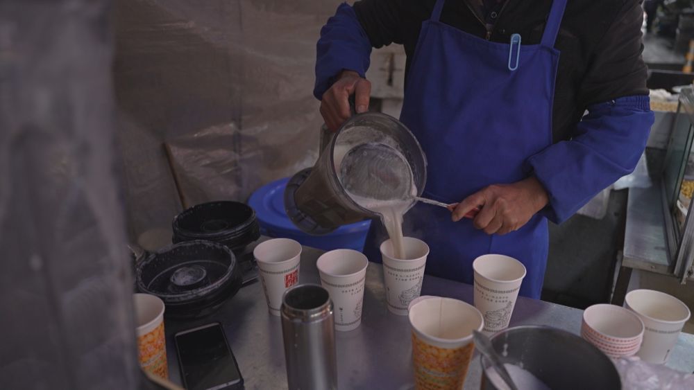 夫妻倆分工明確經(jīng)營早點(diǎn)鋪。(電視視頻截圖)