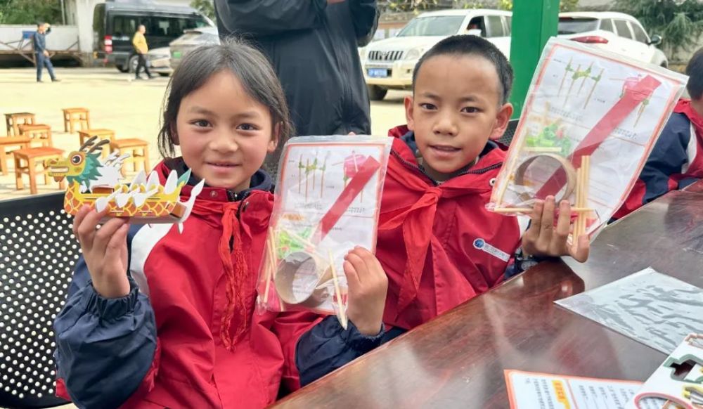 孩子們正在展示做好的非遺手工品。(麗江融媒記者 廖浚宏 攝)