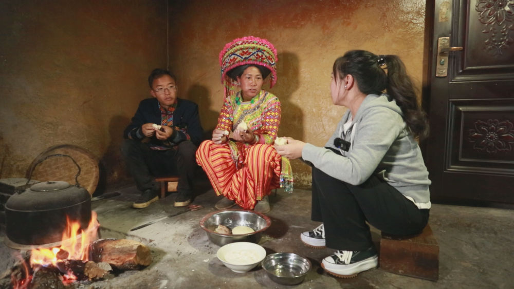 華坪縣融媒體中心記者劉紅陽,在傈僳族老鄉(xiāng)家里采訪。(供圖)
