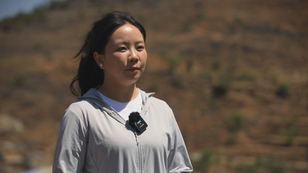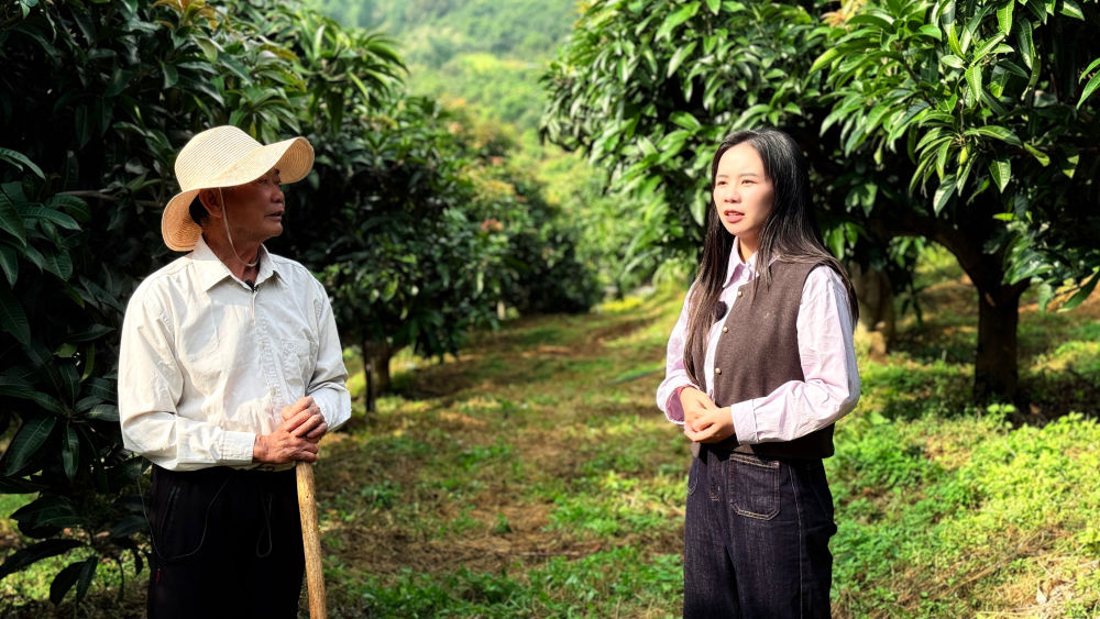 華坪縣融媒體中心記者劉紅陽,在龍頭果子山采訪。(供圖)
