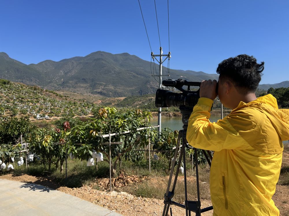永勝縣融媒體中心記者楊鵬程拍攝永勝鄉(xiāng)村振興節(jié)目。(供圖)