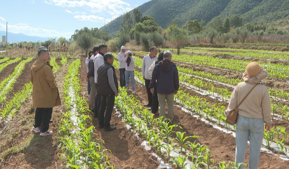 11月24日,專家團(tuán)隊(duì)在麗江天耕農(nóng)業(yè)發(fā)展有限公司種植基地考察玉米科技小院特用玉米品種試驗(yàn)。(麗江融媒記者 趙麗軍 攝)