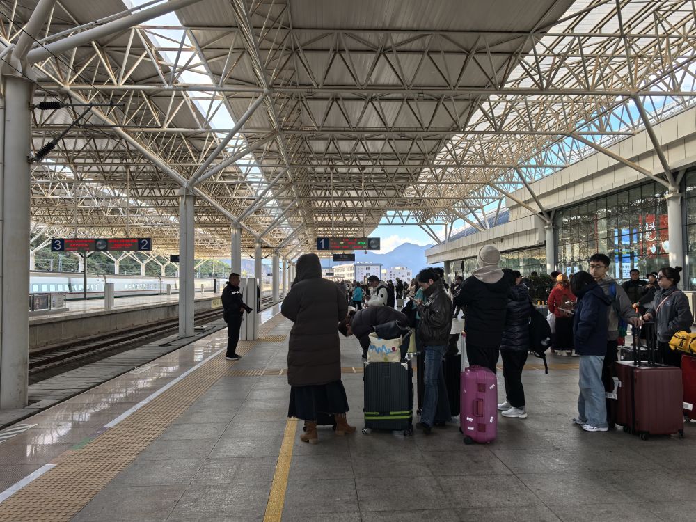 麗江火車站客運(yùn)值班員王怡慧告訴記者:“一年以來,麗香鐵路旅客發(fā)送量維持在較高水平,呈現(xiàn)出體驗(yàn)流、探親流、商務(wù)流、旅游流等多類型客流交織特點(diǎn)。麗江火車站優(yōu)化調(diào)整運(yùn)輸方案,加大運(yùn)力供給,每日安排開行旅客列車7列,節(jié)假日高峰時(shí)段根據(jù)情況增開列車,進(jìn)一步滿足了旅客出行需求。”