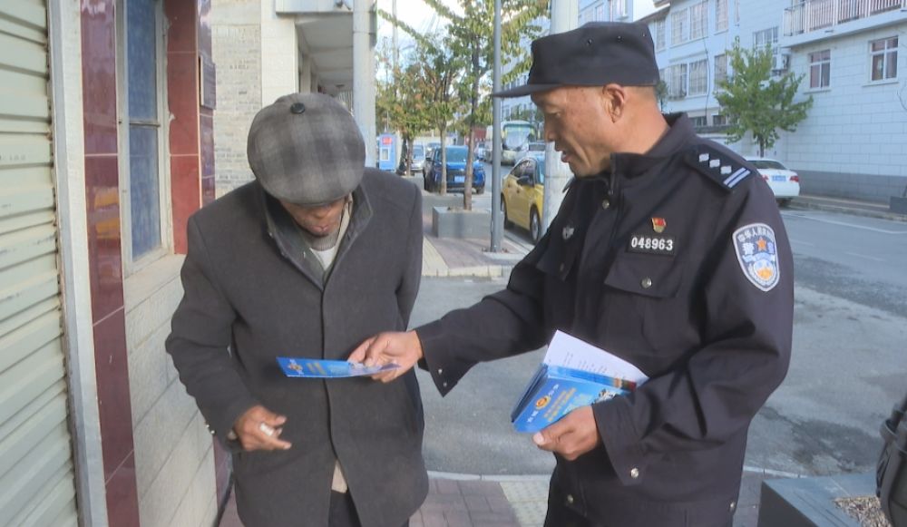 11月25日,民警向轄區(qū)的老年人群體發(fā)放防范詐騙的宣傳手冊。(麗江融媒記者 戴汝杰 攝)