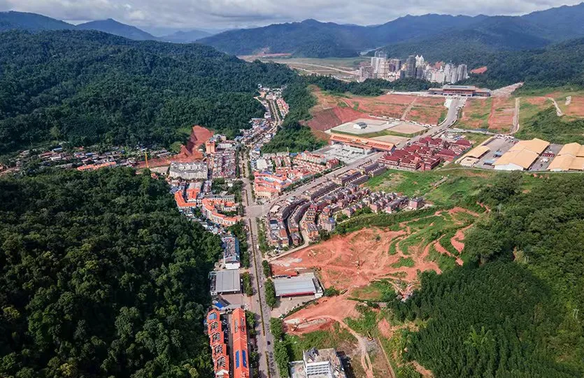 俯瞰磨憨口岸 人民網(wǎng)記者 符皓 攝