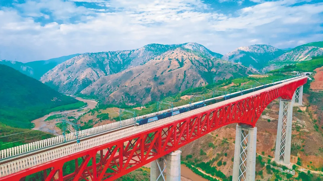 列車飛馳在中老鐵路上。國鐵昆明局 供圖