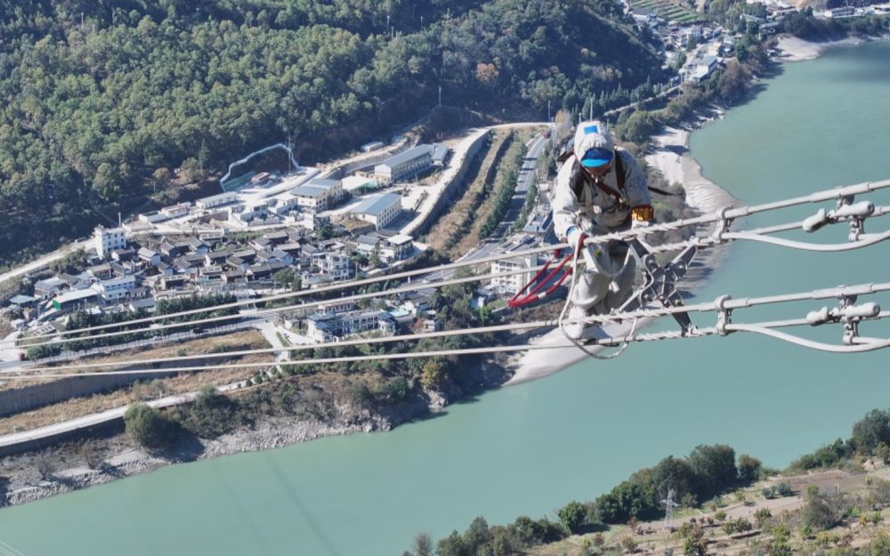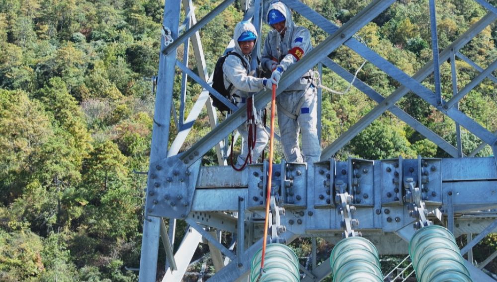 作業(yè)現(xiàn)場,麗江供電局輸電管理所相關負責人對溫度、濕度、風速進行測試并確認具備工作條件后,2名等電位人員登上鐵塔,進入500千伏強電場。塔頂溫度驟降,身下是湍急的金沙江,但作業(yè)人員憑借專業(yè)技術能力,成功克服操作難度高、技術要求高、作業(yè)風險高等困難與挑戰(zhàn),順利完成帶電作業(yè)。