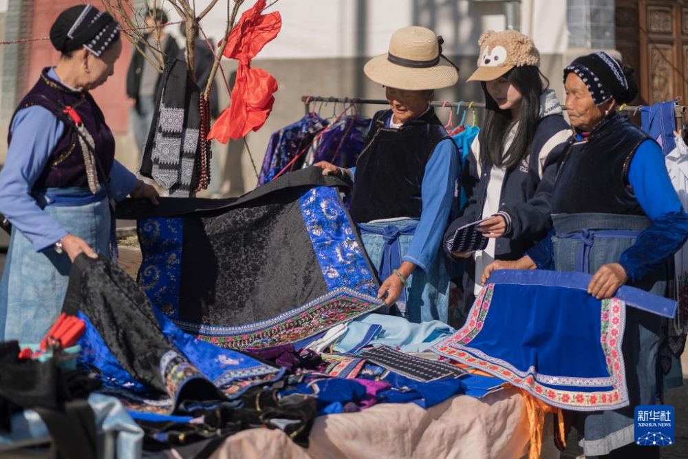 ??1月21日,在云南省大理白族自治州洱源縣鳳羽古鎮(zhèn)年集上,當?shù)卮迕裉暨x新衣。