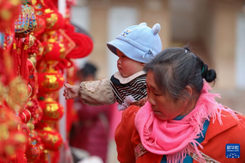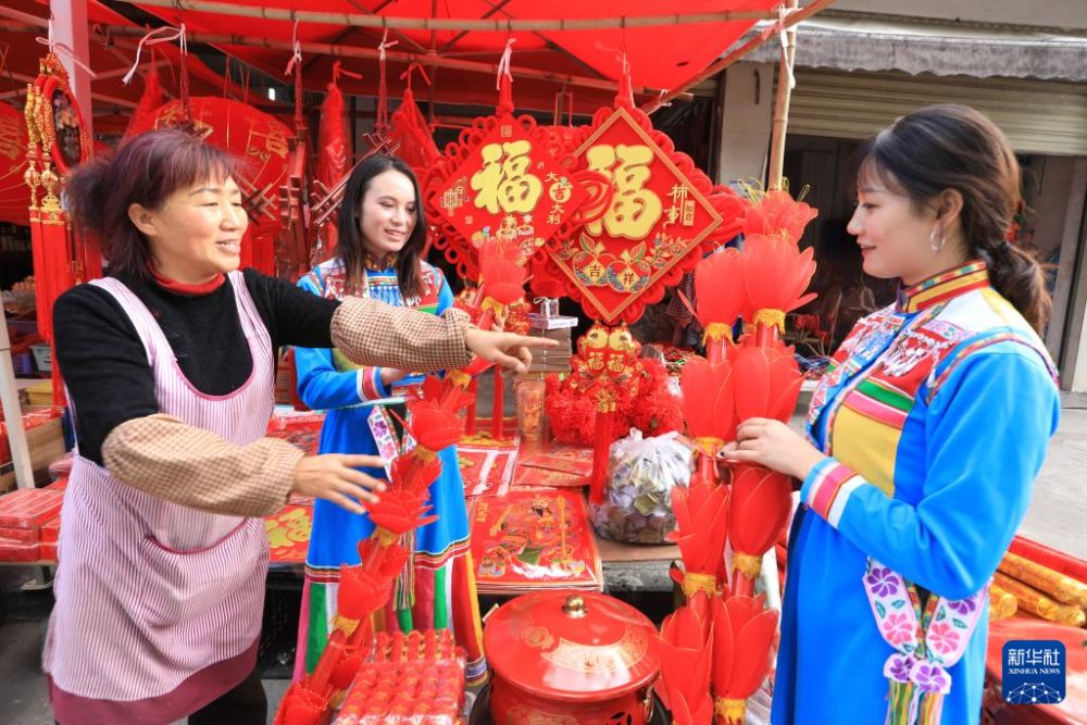 ??1月21日,在云南省曲靖市陸良縣芳華鎮(zhèn)乘明村集市,人們在選購春節(jié)飾品。