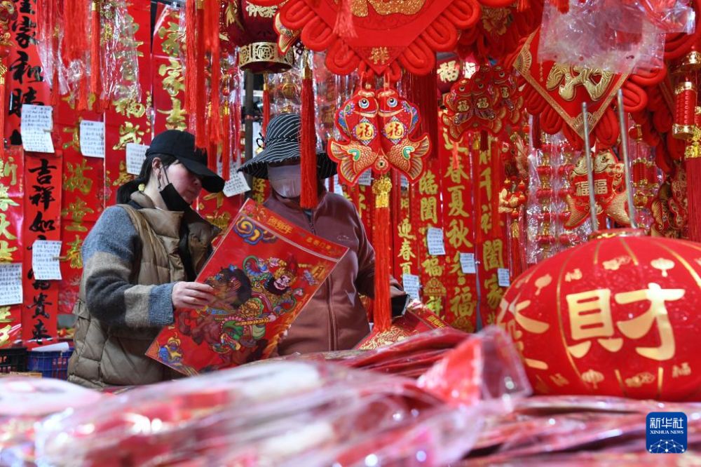 ??1月22日,在云南省麗江市玉龍納西族自治縣黃山街道上吉農(nóng)貿(mào)市場,市民在選購春聯(lián)。