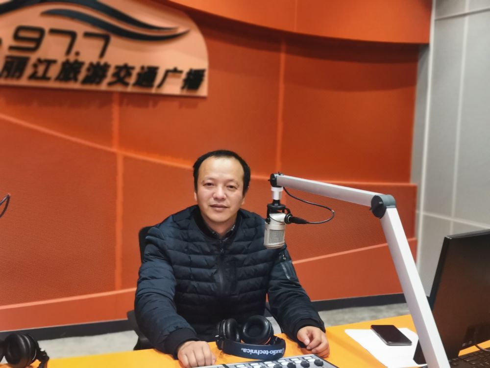 1月27日,麗江市總工會(huì)維權(quán)部部長(zhǎng)張豪作客FM97.7直播間。(梁國(guó)宏 攝)