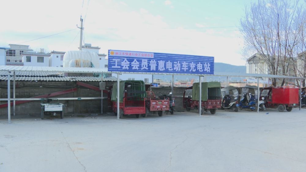麗江快遞物流園區(qū)內(nèi)的工會(huì)會(huì)員普惠電動(dòng)充電站。(麗江融媒記者 張麗瑤 攝)
