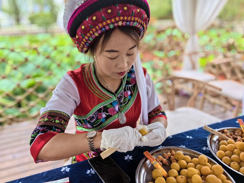 洱源縣盛產(chǎn)梅子,被人們冠以“梅子之鄉(xiāng)”的美稱。這里是白族的主要聚居地之一,不僅有旖旎綺麗的自然風(fēng)光,還有燦爛厚重的歷史文化,傳統(tǒng)美食中最為出名的便是開胃提神的雕梅。雕梅,是在青梅果上雕刻出一些生動形象的花紋,然后經(jīng)過精心制作而成的白族傳統(tǒng)名特食品,在洱源有著悠久的歷史。在洱源,雕梅不僅代表了一個人的心靈手巧,也象征著美好的愛情和幸福的生活。